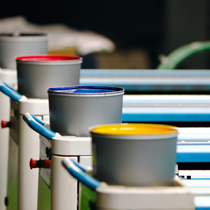 Screen printing is a method used to transfer ink onto a part. The advantage to using screen printing technology is that printing can be done 360 degrees around a cylindrical shape in one application. This includes items as small as a lipstick container and as large as a 5 gallon pail, also flat surfaces as small as a match box or as large as a billboard sign. Printing can also be done on oval surfaces as small as a bottle of nail polish or as large as a shampoo bottle.